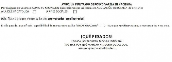 Alerta-denuncia al venir marcadas las casillas del IRPF, a la iglesia y a fines sociales en borradores de Hacienda