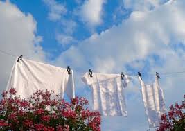 con la ropa tendida, dócil y en paz al toque de la brisa.