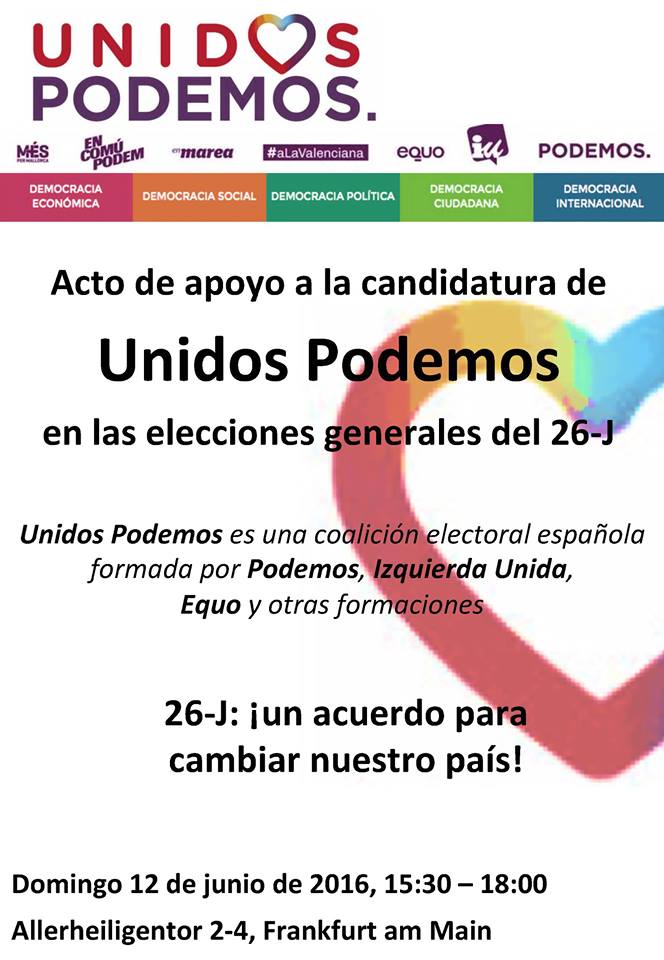 ¿No pueds asistir a Colonia a ver a @Maitemola?T pasas x Frankfurt l Domingo :D #UnidasPodemos @iunida #EntodasPartes